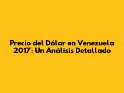 Dolar Venezuela 2017: Precio Y Análisis