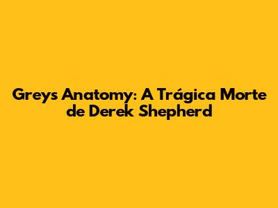 Grey's Anatomy: A Morte De Derek Shepherd