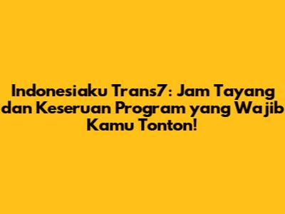Hai, guys! Buat kalian para pecinta program edukatif dan informatif, pasti udah nggak asing lagi dong sama program Indonesiaku yang tayang di Trans7? Program ini bener-bener ngajak kita buat lebih kenal dan cinta sama Indonesia, mulai dari keindahan alamnya, kekayaan budayanya, sampai keunikan masyarakatnya. Tapi, sering banget nih ada yang nanya, "Indonesiaku Trans7 tayang jam berapa sih?" Nah, biar kalian nggak ketinggalan keseruannya, yuk kita bahas tuntas jadwal tayang dan kenapa sih program ini wajib banget masuk watchlist kalian!