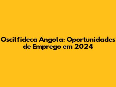 Oscilfideca Angola: Oportunidades De Emprego Em 2024