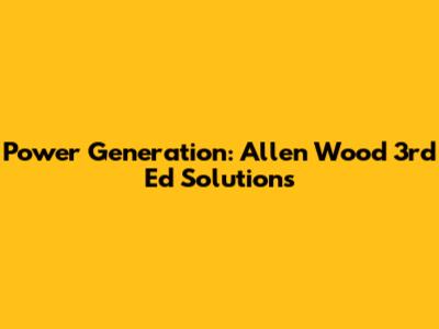 Power Generation: Allen Wood 3rd Ed Solutions