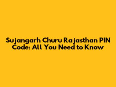 Sujangarh Churu Rajasthan PIN Code: All You Need To Know