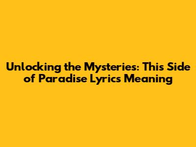 This Side Of Paradise: Unpacking The Lyrics