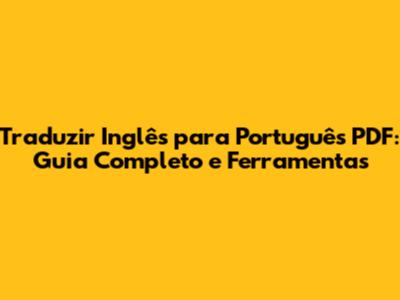 Traduza PDFs Inglês-Português: Guia Completo E Ferramentas