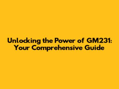 Unlocking The Power Of GM231: Your Comprehensive Guide