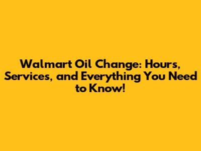 Walmart Oil Change: Hours & Everything You Need!